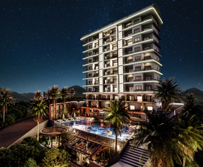 Modern 1+1 apartment with luxury amenities and stunning sea and mountain views in Alanya Mahmutlar