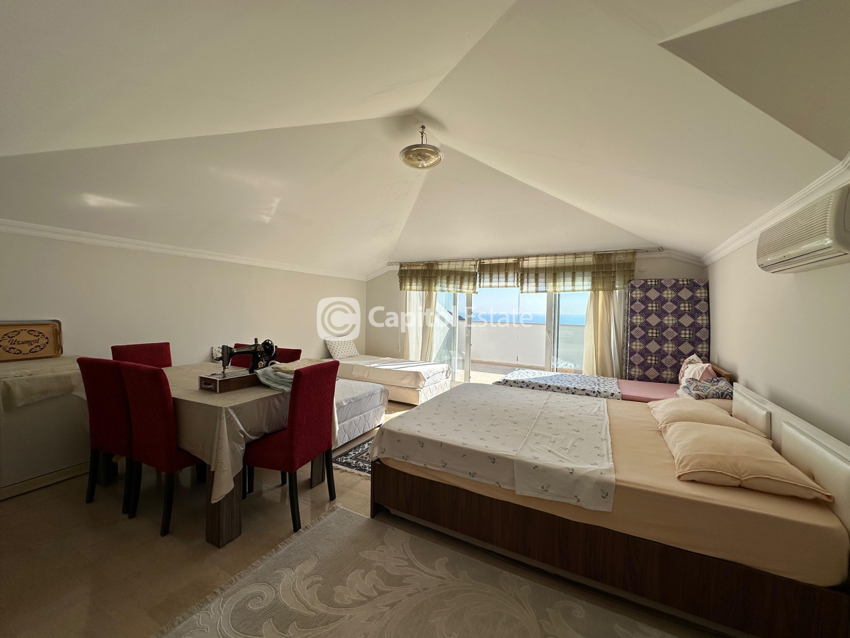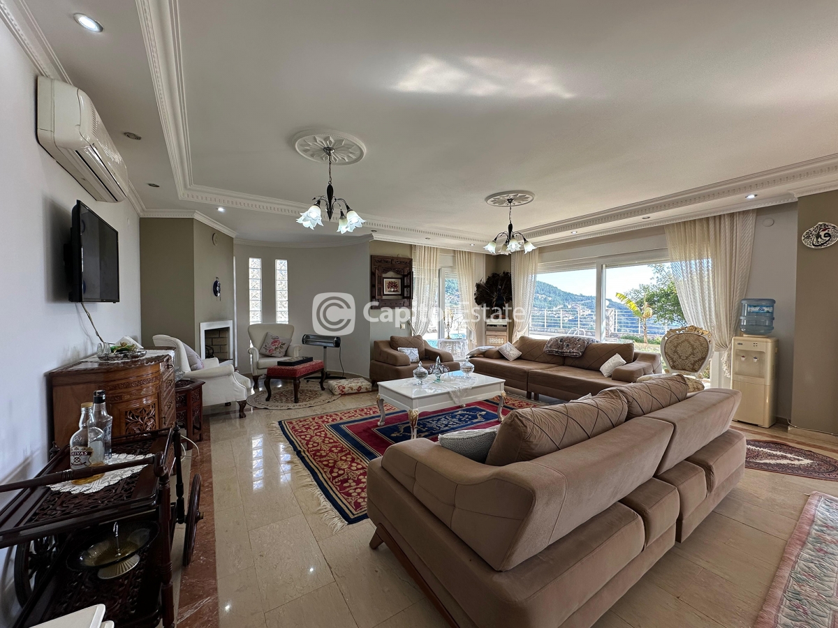 Perched in the serene hills of Alanya's Bektas neighborhood, this luxurious 5+1 villa offers a grand living experience. A panorama of the sea, castle, and mountains unfolds before you, creating a tranquil backdrop for daily life. Spanning 512m2, this fully furnished property is an ideal investment for those seeking Turkish citizenship. Just a short drive to the beach, city center, and shopping, you'll enjoy both seclusion and convenience. The villa features a private pool and a BBQ area, perfect for entertaining guests or relaxing in style. With stunning views from every angle, this home is a true oasis of luxury in Alanya.