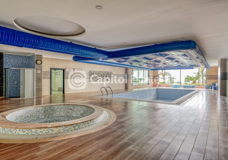 Nestled in the charming neighborhood of Kargicak, Alanya, this luxury 1+1 apartment offers breathtaking sea and mountain views. Wake up to the serene sight of the sea and feel the refreshing mountain breeze right from your balcony. With a pool, fitness center, and sauna on-site, maintaining a healthy lifestyle is effortless. The apartment comes fully furnished, including white goods, ensuring a hassle-free move-in experience. Enjoy the convenience of a dedicated parking space, perfect for busy days. Host delightful BBQ evenings with friends at the designated area while children have a blast at the playground. Just 50 meters from the beach, daily strolls along the shore are a must-do. Situated only 10 minutes from the city center and 40 minutes from the airport, this apartment combines luxury living with practicality.