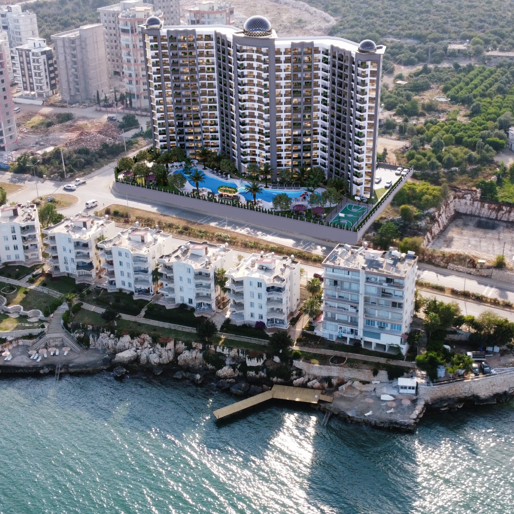 Mersin'de bulunan bu lüks 1+1 dairede nefes kesen deniz ve dağ manzaralarına uyanın. Plaja sadece 50 metre ve en yakın otobüs durağına sadece 5 dakikalık yürüme mesafesinde yer alan bu tesis, hem huzur hem de konfor sunuyor. Tesis bünyesindeki fitness, sauna olanakları ve dinlenme havuzuyla sağlıklı bir yaşam tarzının tadını çıkarın. Sadece 100 metre uzaklıktaki hareketli alışveriş bölgesi sayesinde günlük işleriniz çok kolay. Golf tutkunları için en yakın saha, manzaralı bir sürüş mesafesinde, 45 dakika uzaklıktadır. Havaalanına 95 dakikada kolayca ulaşılabildiğinden, seyahat etmek çok kolaydır. İnşaat halindeki bu mücevherde ayrıca barbekü olanakları, otopark ve aile eğlencesi için çocuk oyun alanı bulunmaktadır. Bu modern sahil tatil beldesinde konfor ve lüksün mükemmel birleşimini deneyimleyin. Mersin'de bir cennet parçasına sahip olma fırsatını...